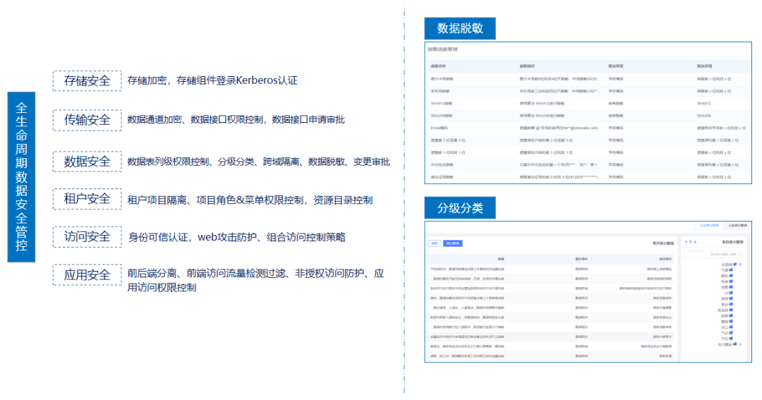 数据安全:数据表列级权限控制、分级分类、跨域隔离、数据脱敏、变更审批